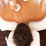 Focus on hands using massage tools to massage a man’s back
